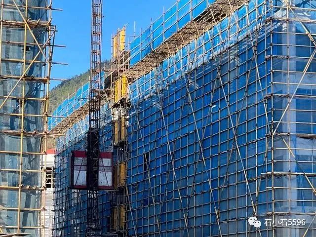 在城峰镇的力生村国泰酒业总部项目现场,可以看到塔吊鳞次栉比,机械声音此起彼伏。挖掘机的钢臂挥舞着,将建筑材料运送到建筑的上层,而工人们则分散在各个建筑中,进行建筑垃圾的清扫、外墙的粉刷、屋面防水材料的涂抹、面瓦铺盖等工作。