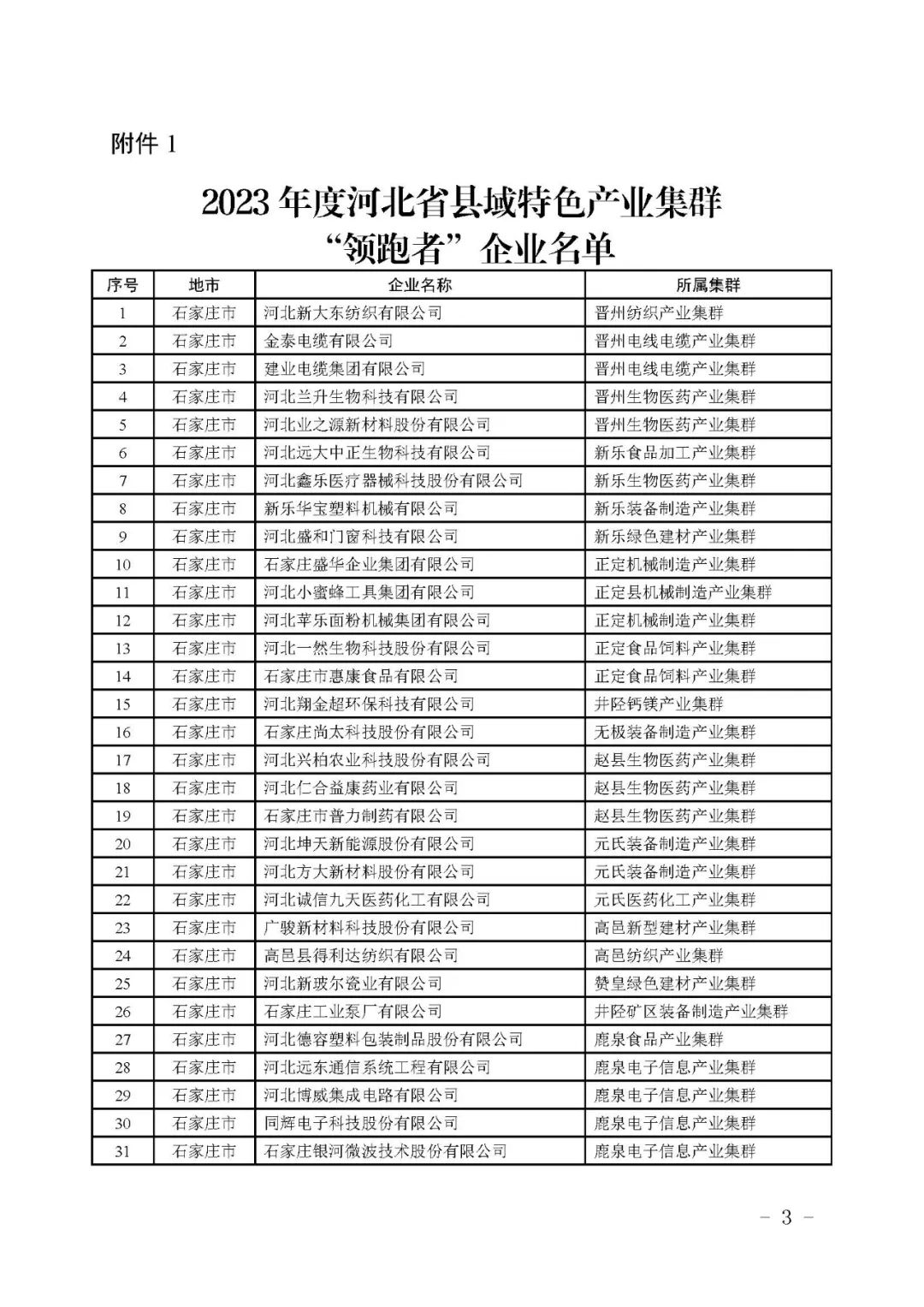 附件:1.2023年度河北省县域特色产业集群“领跑者”企业名单