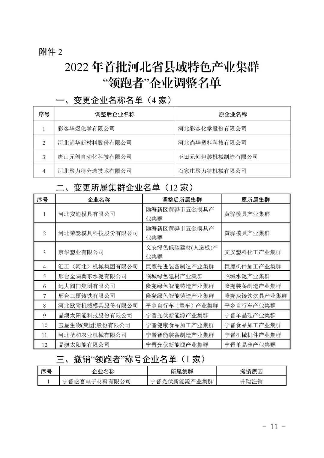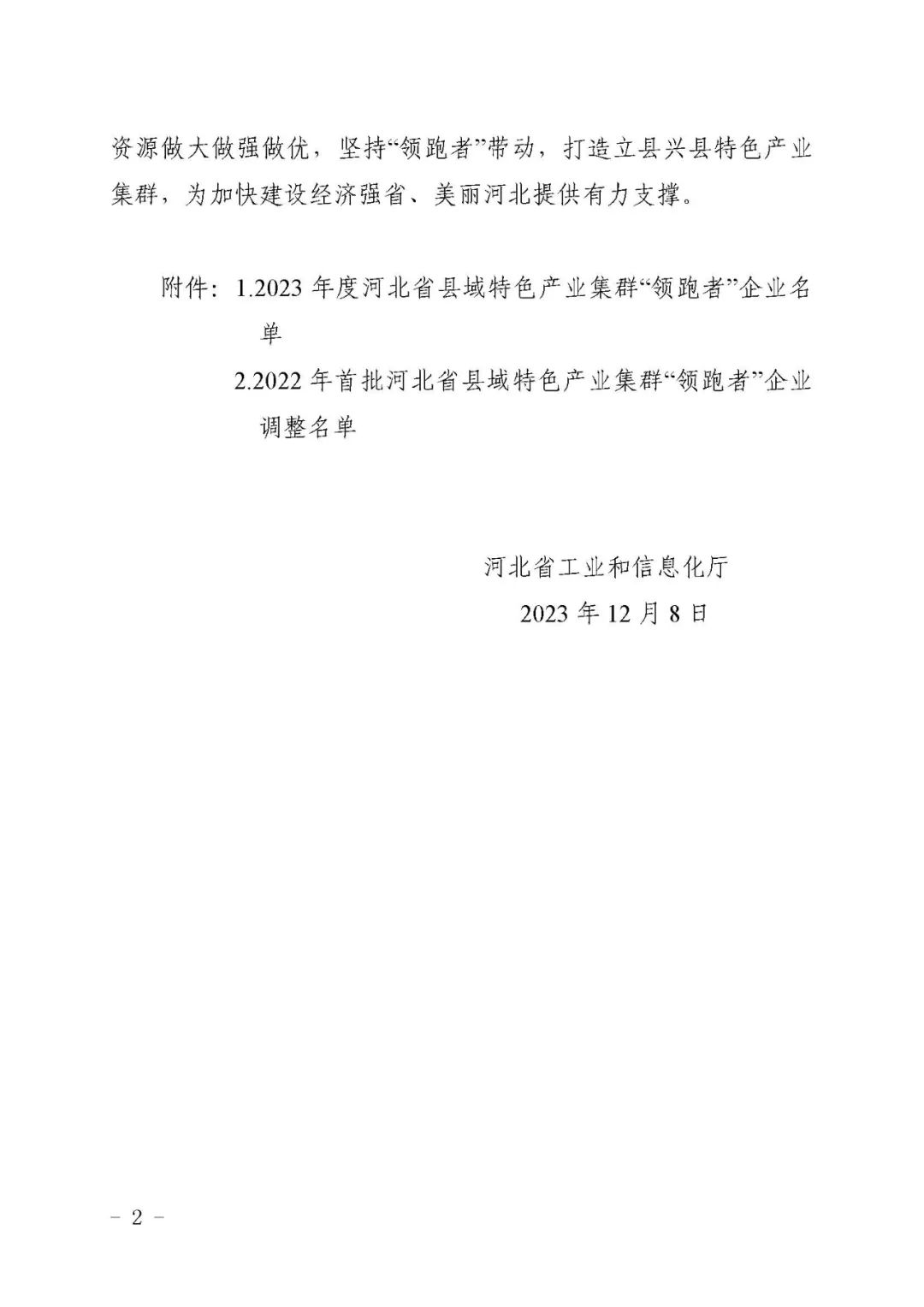 2.2022年首批河北省县域特色产业集群“领跑者”企业调整名单