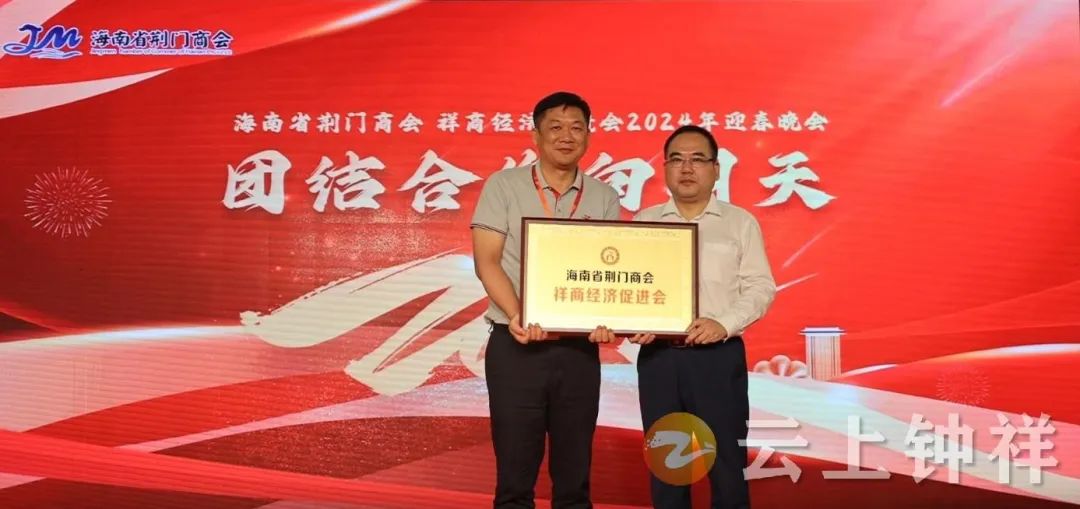 市委常委、宣传部长冯玉霞,市委统战部副部长、市工商联党组书记王子贵,钟祥楚商联合会会长干德义为祥商促进会会长、监事长、执行会长、副会长、副秘书长分别授牌。