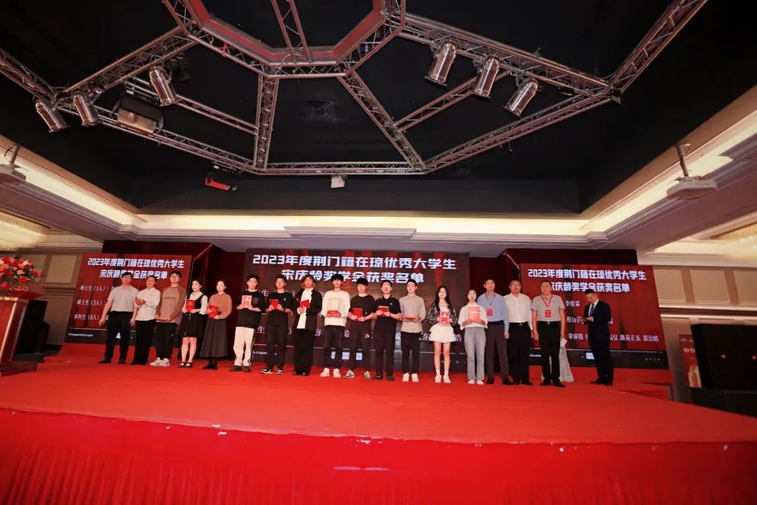市委常委、宣传部长冯玉霞,市委常委、组织部长甘玲,副市长刘涛,海南省宋庆龄基金会秘书长王中海,海南荆门商会会长卢永海为在琼钟祥籍优秀大学生颁发宋庆龄基金会奖学金。
