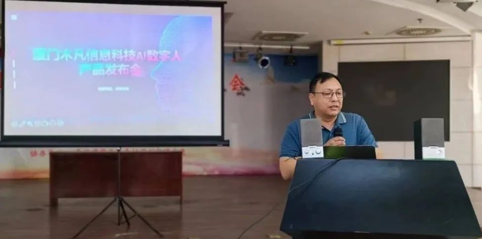 下午4:00,走访组到达第2站:理事陈京权企业---厦门木凡信息科技有限公司,该公司位于厦门海沧区新阳翁角路289号科创大厦一层。走访组的到来,恰逢陈总公司举办“厦门木凡信息科技AI数字人产品发布会”,大家亲临现场,与众多企业家参加发布会。
