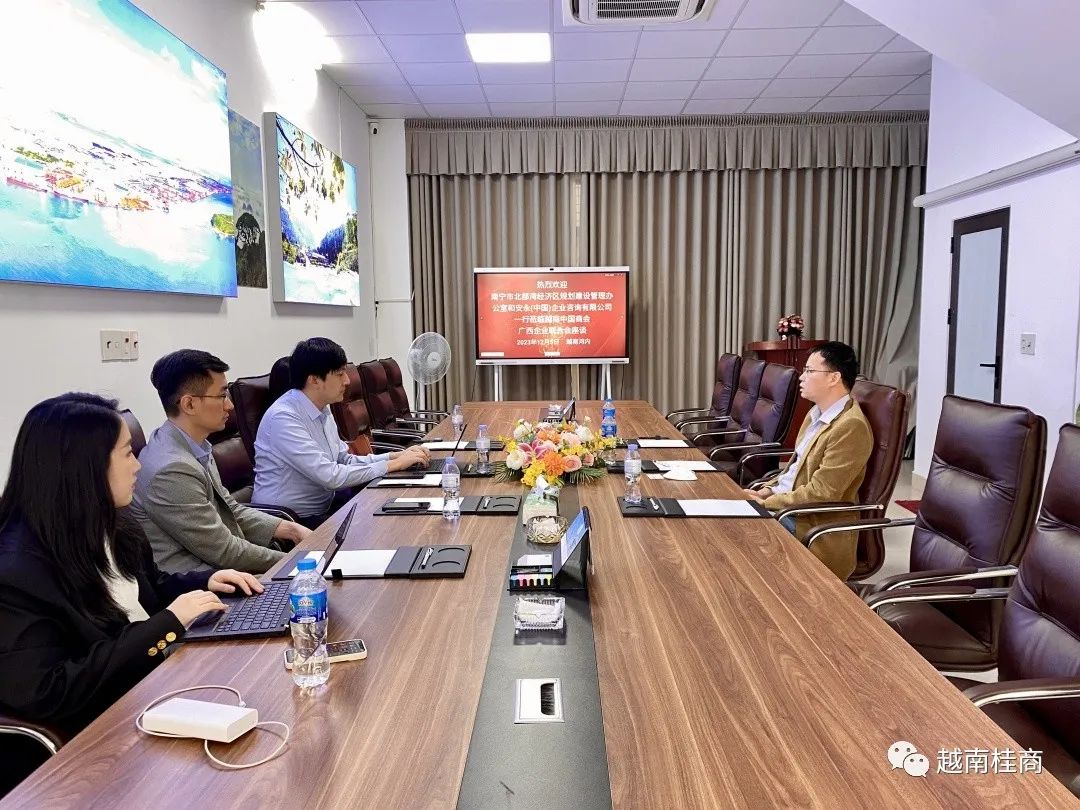 12月5日,南宁市北部湾经济区规划建设管理办公室与安永(中国)企业咨询有限公司一行抵达我会河内办公室,与我会执行会长凌煜松进行了深入的座谈交流。双方以物流及新能源行业为主要讨论议题,共同探讨了行业发展的新趋势以及未来合作的新机遇。