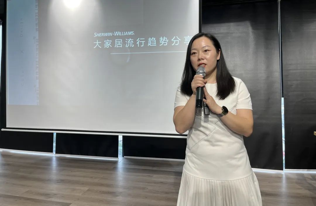 宣伟工业木器涂料亚洲区市场经理兼色彩研发院负责人张华丽女士带来了关于色彩趋势的专题演讲。他向大家介绍了色彩趋势预测原理,并对2023-2024家居空间风格进行趋势解析。深度诠释八种彩潮流,从疗愈舒适到艺术考古,来宾们沉浸在一幅幅精心挑选的设计案例中,在色彩的奇妙世界中遨游探索。