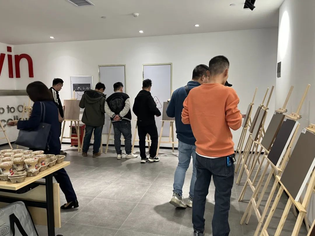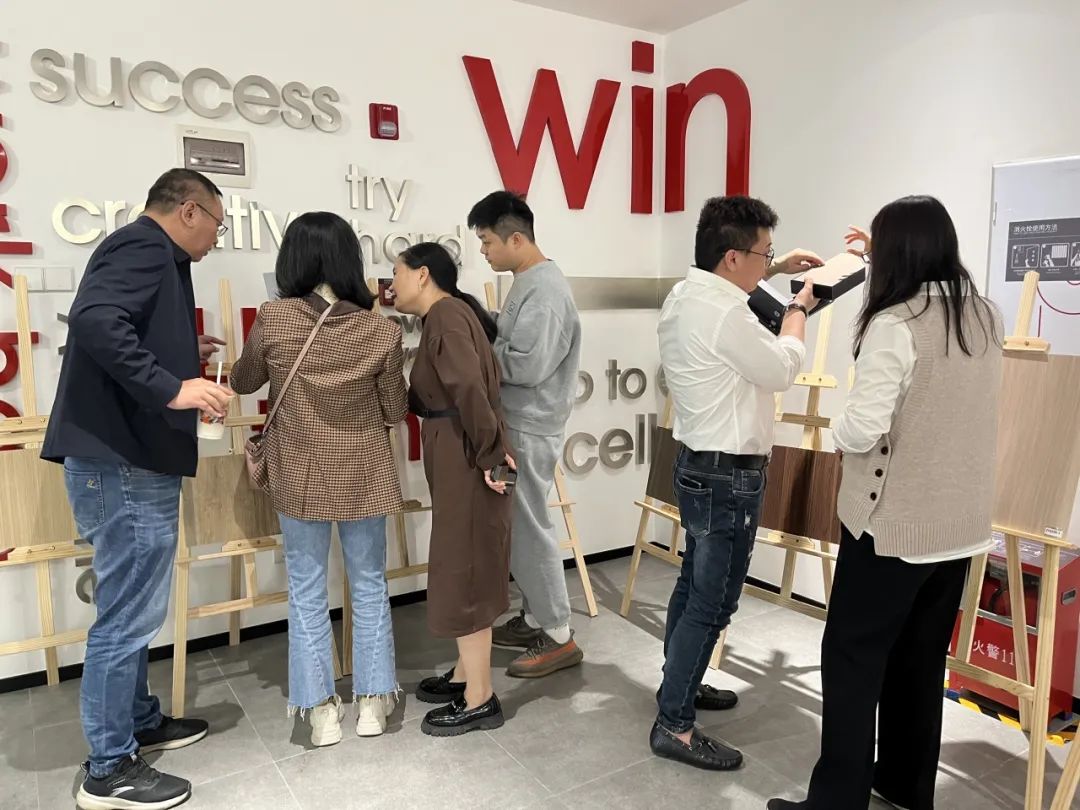 活动开始,参会来宾尽情投入到样品鉴赏的环节中。样品展示区摆放了各式各样的家居饰面材料,纹理丰富的木皮、色彩斑斓的PP等,每一种材料都在诠释着独特的诗意、纯粹的美感,引发了参与者们对家居美学的无尽遐想。