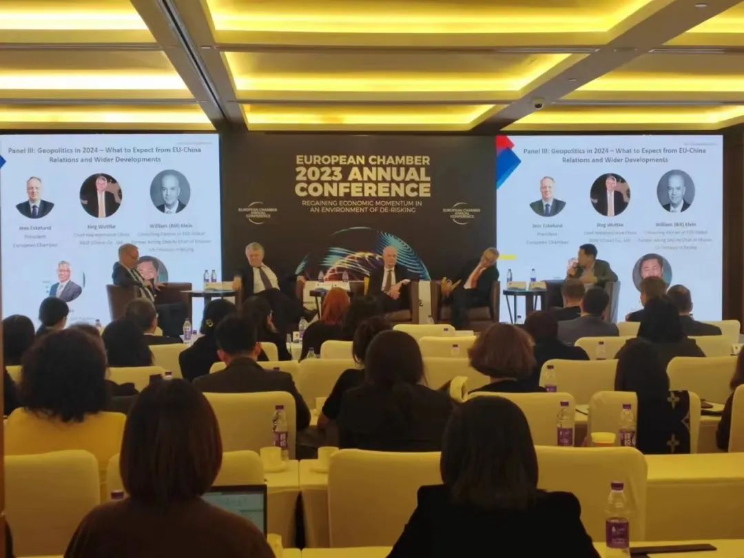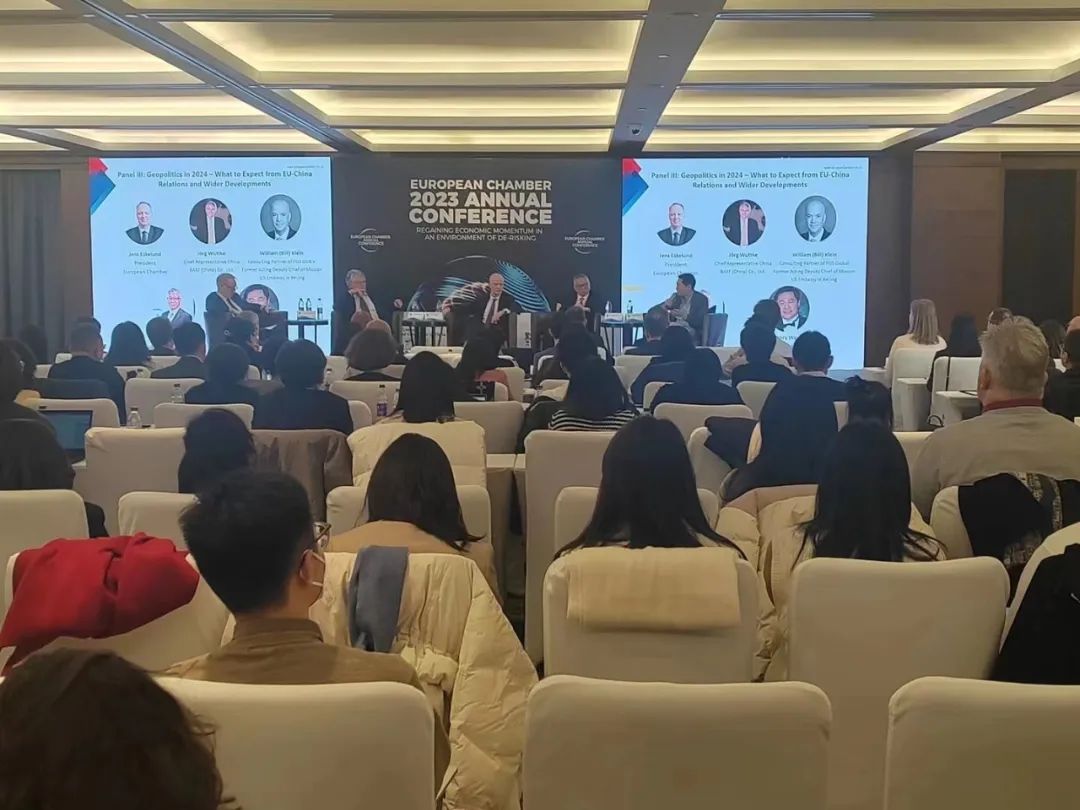 本次中国欧盟商会年会聚焦“在去风险环境中恢复经济活力”主题展开,围绕“中国经济回顾与展望”“去风险和自力更生——未来会怎样?”“2024年的地缘政治——对中欧关系发展的预期”等议题设置了三场研讨。