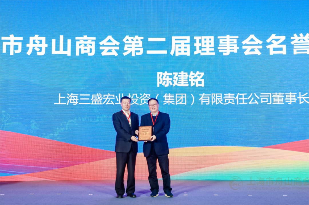 会议第二阶段,首先由上海市舟山商会第一届理事会会长陈建铭作工作回顾。与会领导为新当选会长、执行副会长、副会长、监事长、秘书长、顾问、名誉会长授牌。