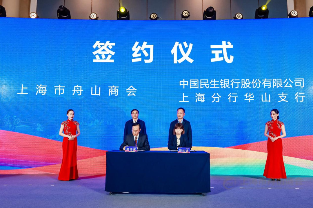商会与民生银行上海分行代表—华山支行签署战略合作协议。上海市政府合作交流办二级巡视员陈晓云和民生银行上海分行公司部总经理封新建见证签约。