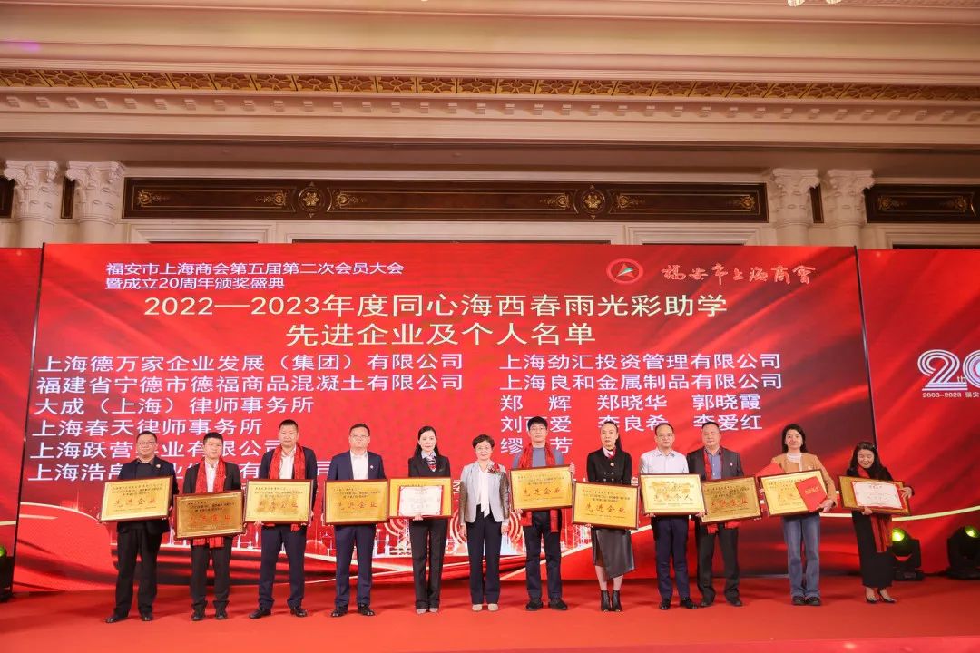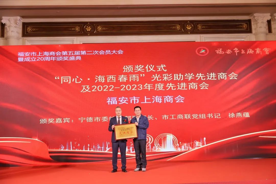 活动现场举行了全家福安会客厅推介暨全家福安美食连锁签约仪式、福安市上海商会与宝山区签约仪式和福安市驻外异地商会联盟签约。活动还为商会颁发了“同心·海西春雨”光彩助学先进商会及2022-2023年度先进商会奖牌,为商会企业成员颁发了商会优秀企业、“同心·海西春雨”光彩助学先进企业及个人、支持商会工作突出贡献奖、社会责任奖先进个人等奖牌。
