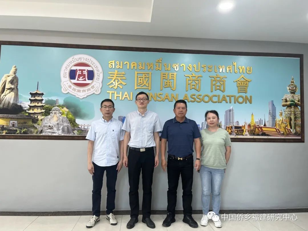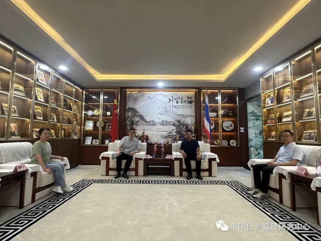 2023年12月11日,中国侨乡(福建)研究中心林胜教授一行应邀拜访泰国闽商商会,与泰国商会会长蔡孝兴、秘书长郭荣置等洽谈交流。蔡孝兴会长介绍了泰国闽商商会的成立及发展情况,林胜教授也将中心工作内容以及取得成绩向蔡会长一行进行介绍,双方均表示未来可以加强相互间的往来和联络,为侨务事业高质量发展奉献力量。