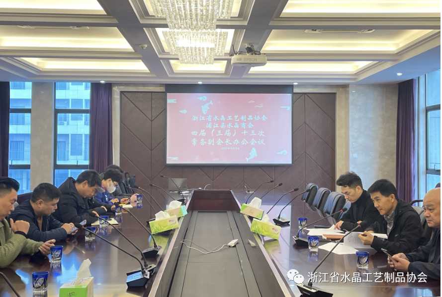 会议审议通过了关于召开浙江省水晶工艺制品协会四届九次(浦江县水晶商会三届九次)理事会的有关事项;审议通过了“浦江老师傅”推荐人选的有关事项以及关于“浦江水晶”集体商标代理费的有关事项。