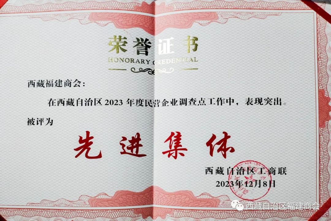 会上,对西藏自治区2023年度民营企业调查点工作表现优异的5家先进集体、20名先进个人给予表彰,西藏自治区福建商会荣登“全区民营企业调查点工作先进集体”榜单。