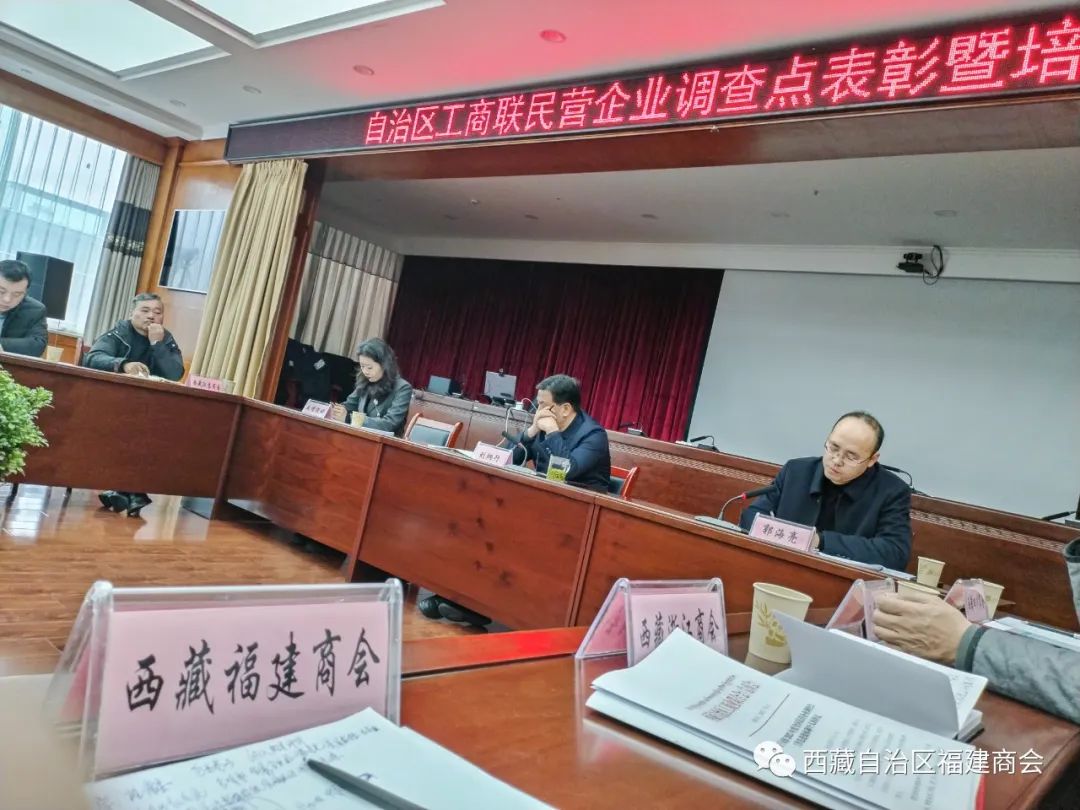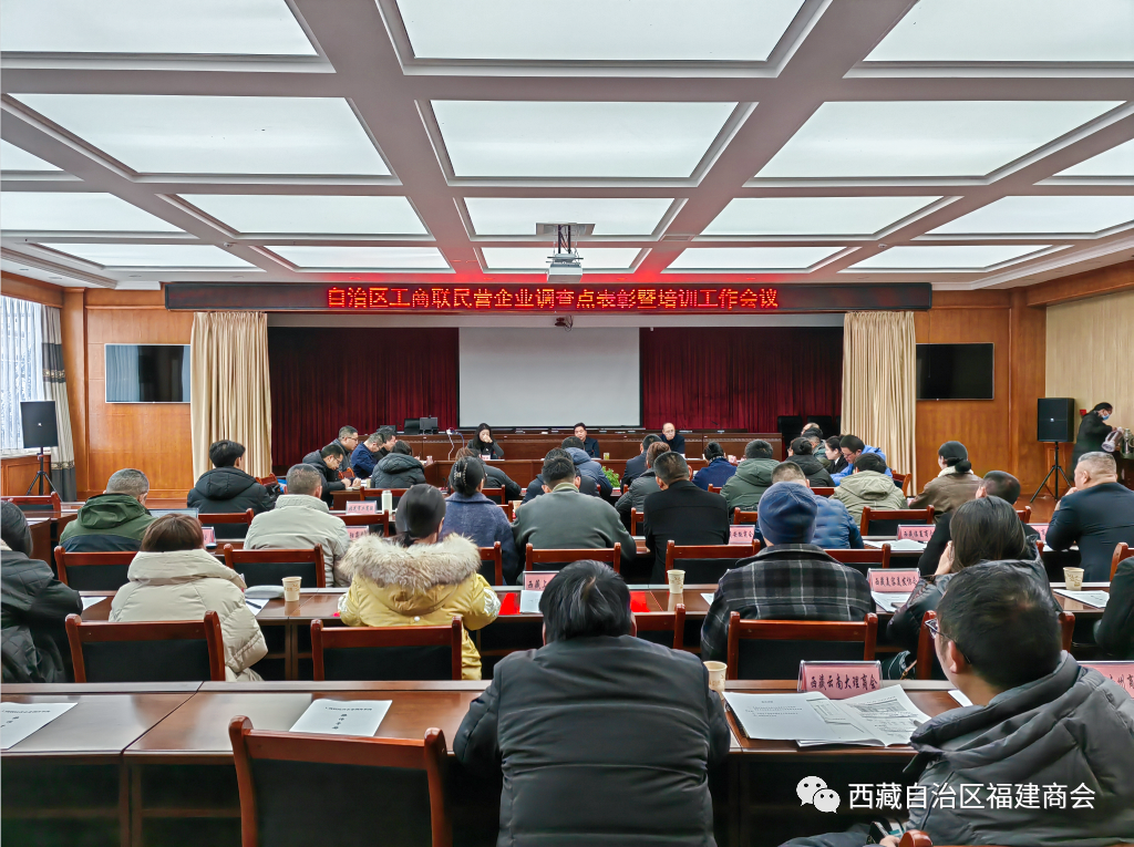 12月8日上午,西藏自治区工商业联合会民营企业调查点表彰暨培训工作会议举行。自治区工商联二级巡视员刘炳行出席并讲话,自治区工商联政策研究室主任郭海亮主持会议,自治区工商联政研室、七地市工商联、自治区工商联直属商协会和会员企业代表共50余人参加。西藏自治区福建商会秘书处参加会议并作交流发言。