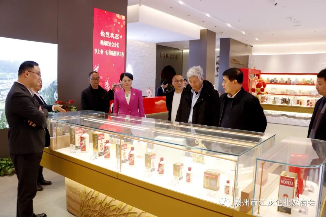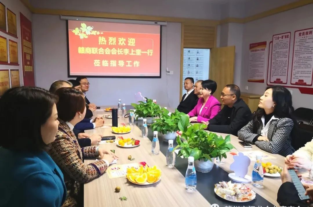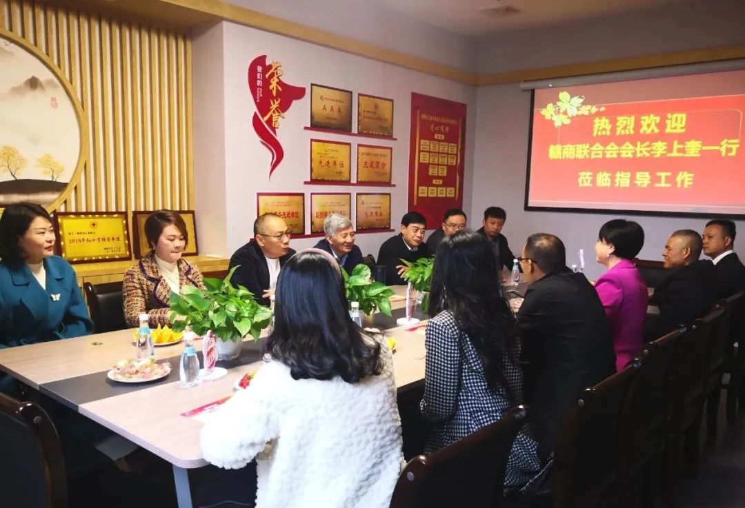 12月13日上午,赣州市工商联副主席、赣商联合会会长,江西悦安新材料股份有限公司董事长李上奎、赣商联合会秘书长刘运富、香江湾酒店董事长赖俊林、易装传媒董事长熊勇、孝德文化董事长卢强、助企宝董事长刘芳、红土地律所主任钟大勇、启明星眼科院长助理谌燕等一行莅临赣州市江龙企业家商会交流指导,商会会长赖庆凤、党支部书记、副会长袁涛、秘书长宋赟等热情接待了走访组一行并进行了座谈交流。
