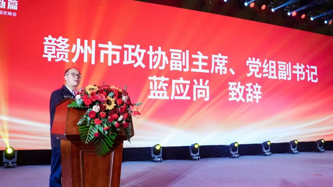 赣州市政协副主席、党组副书记蓝应尚发表讲话,在向换届大会胜利举办和新当选的理事会领导班子表示热烈的祝贺,向长期以来关心、支持赣州经济社会发展的各界人士表示衷心的感谢后,他赞扬商会在强化政治引领、服务会员发展、助力家乡建设、参与公益事业等方面做了大量卓有成效的工作。商会发挥资源优势,四年来引进13家企业投资100多亿元,疫情期间捐赠抗疫物资800多万元,投资500万元兴建扶贫车间,为家乡经济社会高质量发展作出了积极贡献。他对新一届商会提出三点希望:一是加强政治建会,坚持正确办会方向。二是发挥自身优势,助推赣州高质量发展。三是坚持创新引领,促进商会事业再创辉煌。