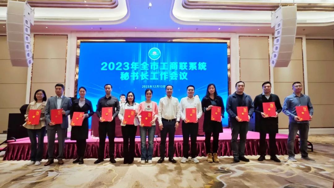 为深入学习贯彻习近平总书记关于中华全国工商业联合会成立70周年贺信精神和全国工商联成立70周年庆祝大会精神,加强全市工商联系统秘书长队伍建设,12月13日,东莞市工商联(总商会)召开2023年全市工商联系统秘书长工作会议,表彰先进、交流经验、互学互促。市委统战部副部长、市工商联党组书记陈国良,市工商联党组成员、副主席李月嫦,镇(街道)工商联(商会)、异地商会和行业协会秘书长等约200人参加会议。会议由市工商联四级调研员李志刚主持,望牛墩镇工商联(商会)副会长兼秘书长杜汉杰、执行秘书长陈福红参加会议。