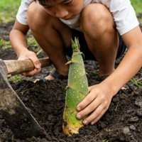 找到目标后,先用锄头轻轻刨开笋周围的泥土,直到看清竹笋根部,再对准根部锄断,就能将春笋连根挖起,过程既有趣又有成就感,还能让青少年在劳作中体会收获的快乐,感受劳动的意义。
